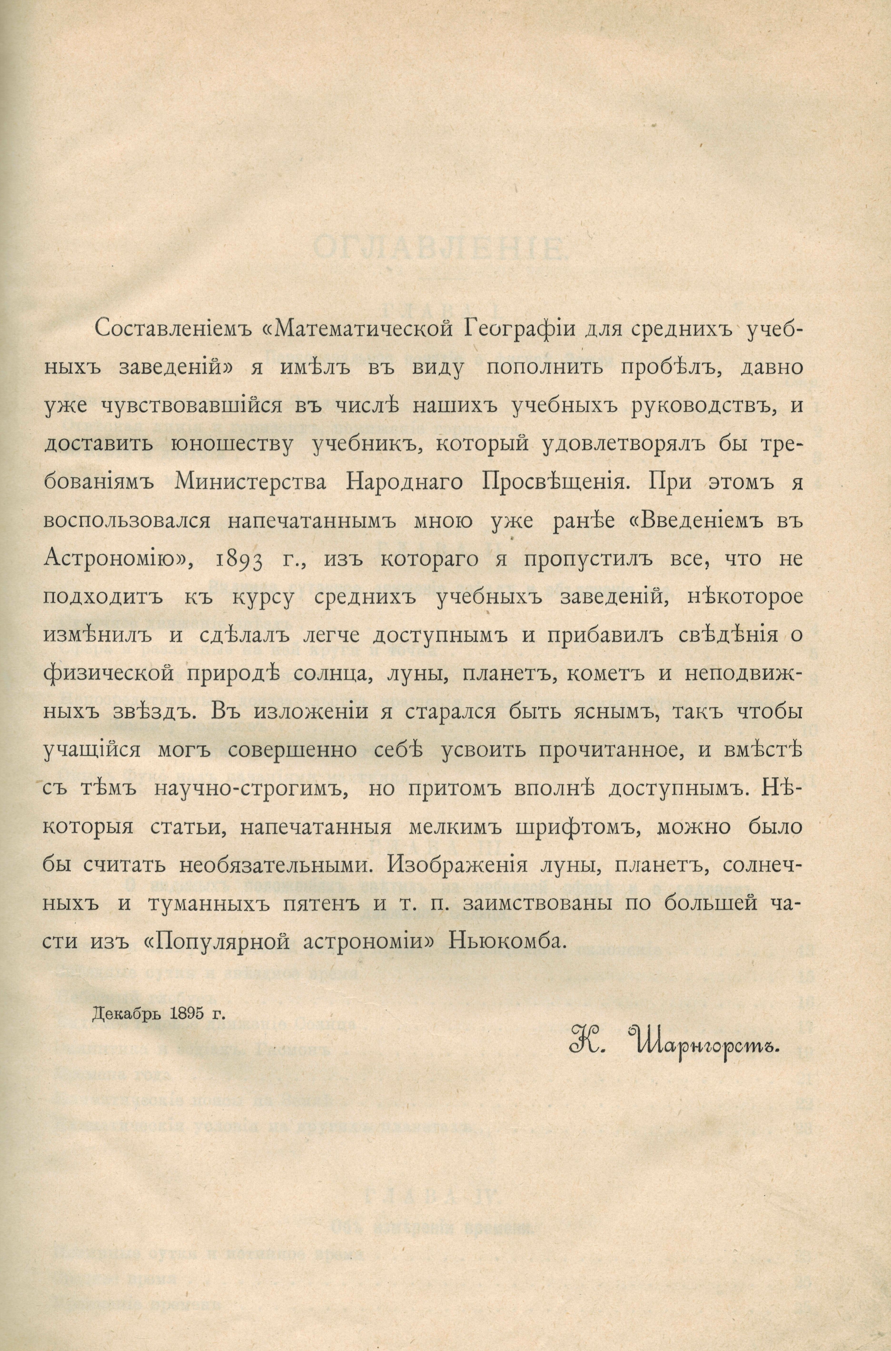 Математическая география : для средних учебных заведений / сост. К. Шарнгорст, заслуженный профессор Николаевской Академии Генерального Штаба. – С.-Петербург : Военная типография, 1896. – 170 с. - Удостоена премии императора Петра Великого.